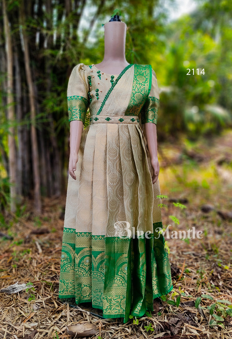 - 2114 Ready to Dispatch: Green Gold Gown with Dupatta