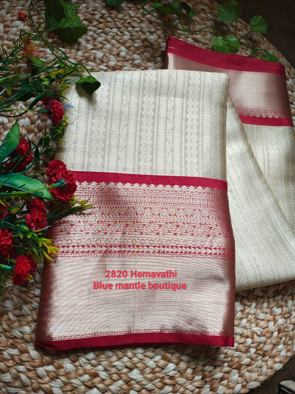 - Color: golden with red base saree
